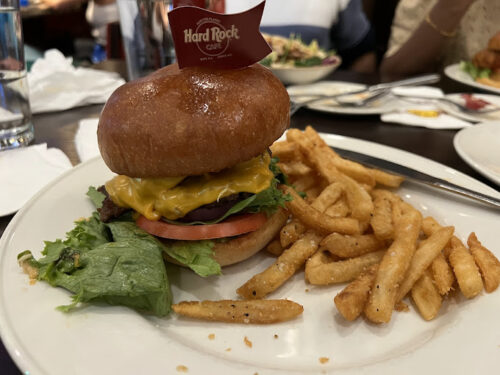 Hard Rock Cafe combines classic American cuisine with a vibrant rock ‘n’ roll atmosphere, featuring music memorabilia and live events, making it a popular destination for both dining and entertainment.