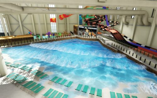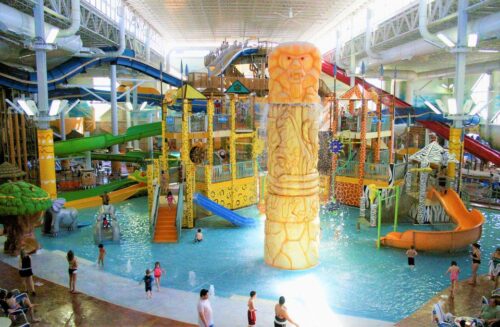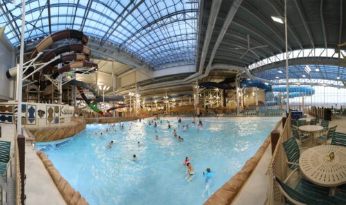 Kalahari Indoor Waterpark is a 125,000 square foot indoor water park located in Wisconsin Dells, Wisconsin, USA. It is part of the Kalahari Resorts & Conventions which has several locations in the US. The park features 30 waterslides, 20 pools and whirlpools, a wave pool, an adult swim-up bar, private cabanas, a waterfall, and a kiddie pool area. It is America’s largest indoor water park.